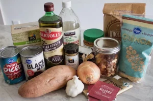Stir in the tomato paste and cook for 1 minute. Stir in the zucchini, tomatoes, oregano, and salt and pepper and cook for about 2 minutes. Stir in the quinoa and remove the pan from the heat.